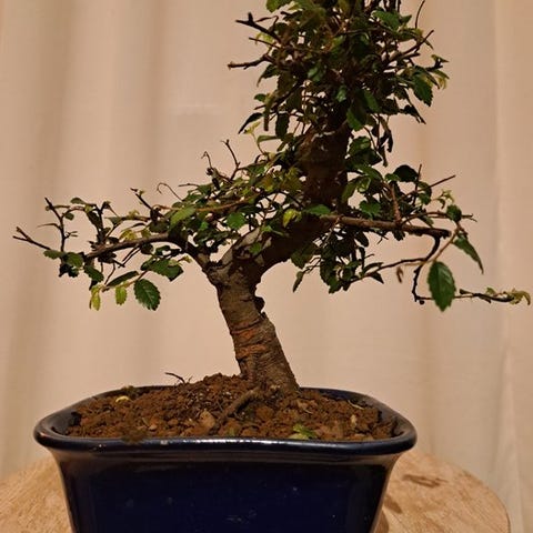 Trænes og beskæres på samme måde som Jap. Zelkova og den kinesiske Parviflora (Der begge er Ulmus). Her er bladene bare mindre og oplagt til fx Shohin bonsai. Bladene er gyldne og grønne.