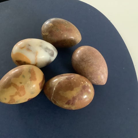 De 4 farvede marmor æg sælges samlet for 100 kr.