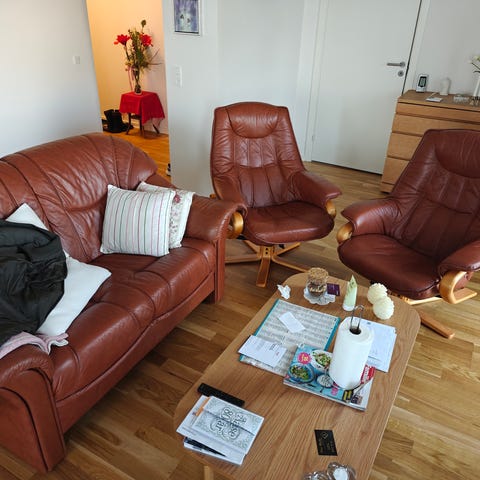 Sofagruppe leder, brugt men i fint stand, klassisk dansk design, passer til sommerhuset eller stue.