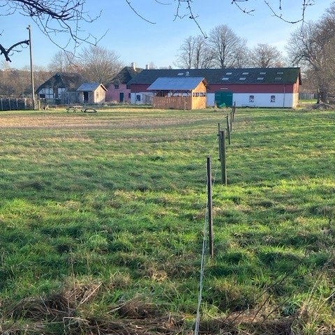 Der er indhegnet ridebane på stedet og ridehal 4 min i bil.