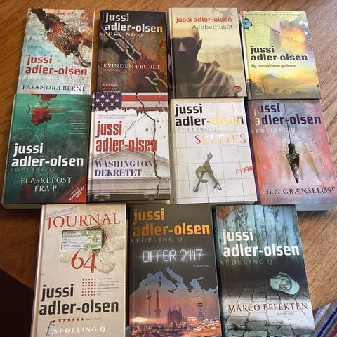 20kr pr stk. 7 for 100kr. 20 for 200kr. De er alle i rigtig fin stand. Gør et godt kup. Bl.a. , jussi adler Olsen, Michael Krefeld ,, Jesper Stein,, Jane Aamund,Ida Jessen, Kim Faber, Jens Andersen, + flere. Skal hentes på Amager. Fra røgfrit hjem.