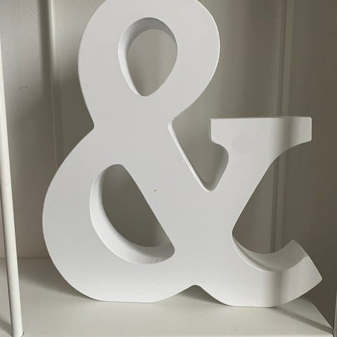 Sæt af bogstaver i hvidt materiale med sølvfarvet kant. Bogstaverne er store og kan anvendes til dekorative formål eller skilte. Pr stk 195