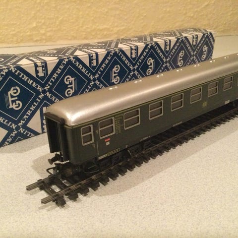 10 stk forskellige Mærklin togvogne Prisen er pr stk kr 100 1 stk Mærklin lokomotiv Deutsche Bundesbahn Kr 500 1 stk Mærklin New Hauen 332 nr 3062 Kr 600
