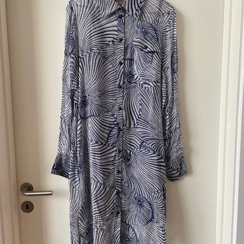 Kjole Baum und Pferdgarten med smokke blå blomster. 100% Polyester. Lining viscose. Jeg har størrelse 40 og 42. Bare skriv til mig. Tak.
