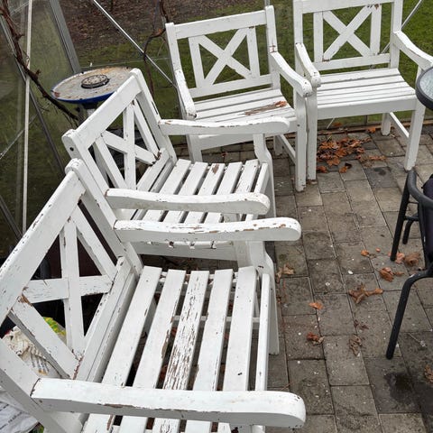 Havestolesæt hvidt træ - med indbygget bord imellem