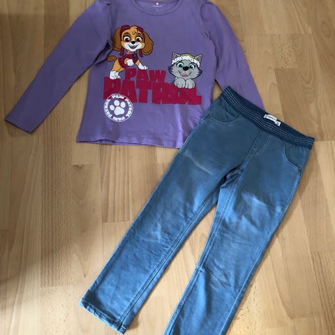 Helt nyt tøjsæt med Paw patrol sælges . Det er stadig med mærker . Det består af bluse og bukser . Det er i en mega flot lilla farve . Der er motiver af Paw patrol på både bluse og bukser . Begge dele er i str 110. Nypris pr del 180kr så ialt nypris for sættet 360kr