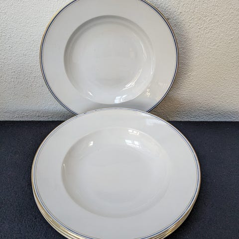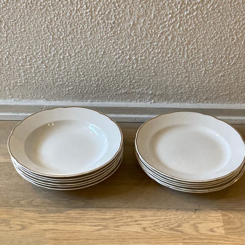 Brugte med få ubetydelige brugsspor og ingen, skår, revner eller misfarvninger. Bemærk at 1 tallerkener har et lille bitte nag på glasuren på kanten af tallerkenen. Se sidste foto.