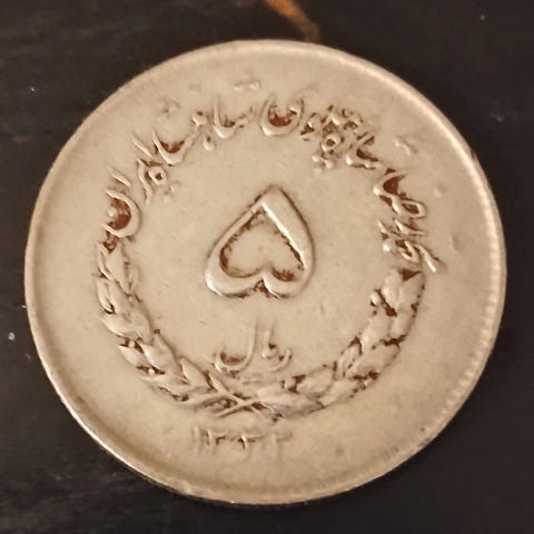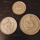 3 kongelige iranisk mønter, 2 Real, 5 Real og 10 Real.