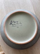 Keramik fad, Johgus, motiv: Bornholm 1950, Keramik fad i flotte brunlige farver diameter 18 cm målt fra kant til kant udført af Johgus, Bornholm 1950