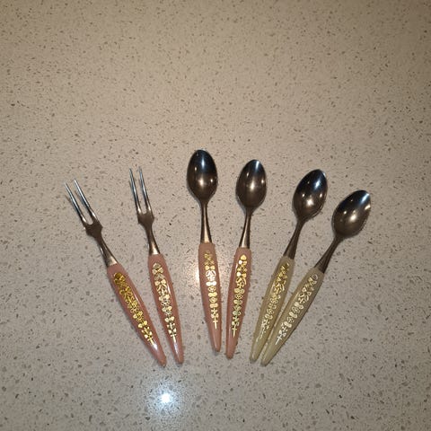 Bestik, 8 forgyldte teskeer, knap 11 cm lange, Aldrig taget i brug, Ældre forgyldte Nye teskeer, prisen er for alle 8.