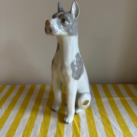 hund i porcelæn, Sitzendorf, motiv: hund