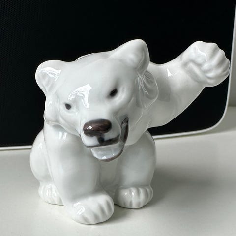 Den har tre hvide småt pletter bagepå, det ene ligner glasuren, de andre ved jeg ikke hvad er.