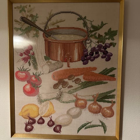 Smukt broderet billede af Fløjlsdrengen. 55x43 cm.