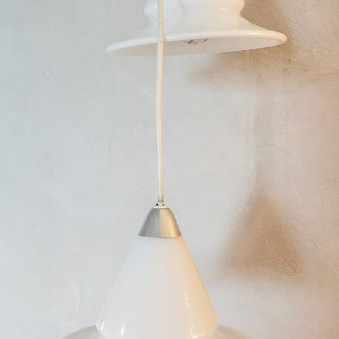 Hvid opal spisebordslampe Ø39. Holmegaard 1981 – Design: Michael Bang.
