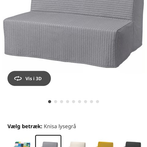 Købt fra ny fra https://www.produceshop.dk/2-personers-sovesofaer-i-stof/sovesofa-til-2-personer-i-skandinavisk-stil-i-stof-elettra#/5-farve-gr%C3%A5. Brugt meget få gange at sidde på. Ingen brugsspor (hvad vi er bekendt med).