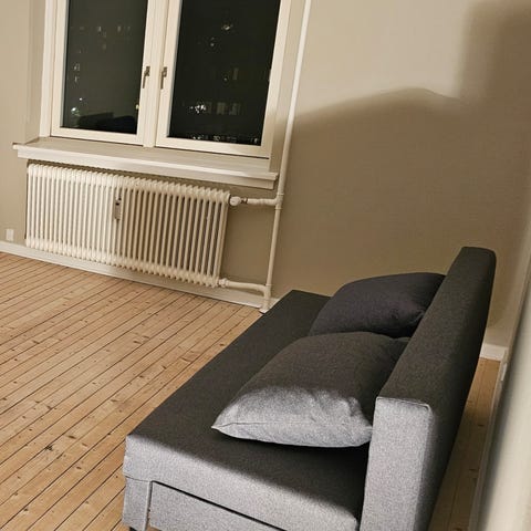 Billig på grund af ønske om hurtig salg, samt lidt hård siddekomfort. Ligger fint i den. Fin til ekstra sovemulighed for gæster fx. Og til gæste-/ekstra-værelse.