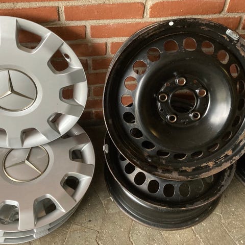 De har siddet på en Mercedes B220 som vinterfælge. Har kun kørt 1 vinter.