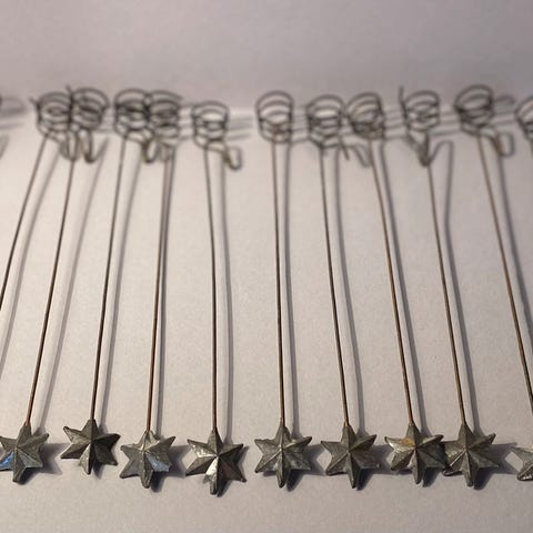11 stk. Gamle stjerne lyseholder, til juletræs lys. Ved ikke helt hvad de er lavet, måske zink, men flotte er de.