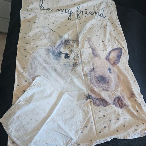 Sødt sengesæt fra ikea i enkelt design med en sød elefant på, næsten ikke brugt og passer til junior dyner.