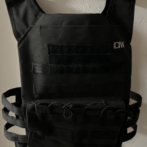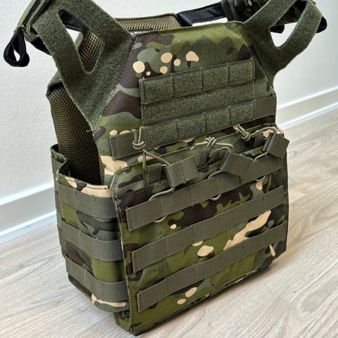 Der er plads til 10 plader i vesten. Vesten vejer 1kg sælges uden plader.