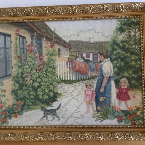 Flot broderet billede med grønlandske motiver. 40x64 cm.