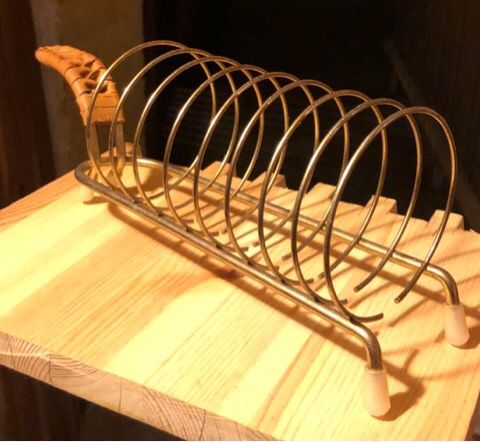 Jeg tror det er en toastbrød holder. Den måler 30 x 14 cm højde 6 cm