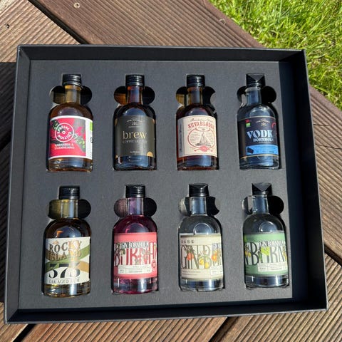 2 gaveæsker med forskellige typer snaps. 8 styk pr æske