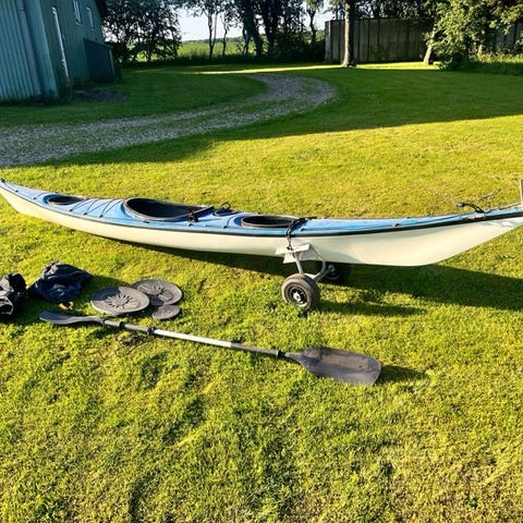 Sjældent udbudt og lækker og stabil 2-er kajak med masser af plads til bagage og behagelige sæder. Meget retnings-stabil og sikker i de fleste farvande. Sjældent udbudt.