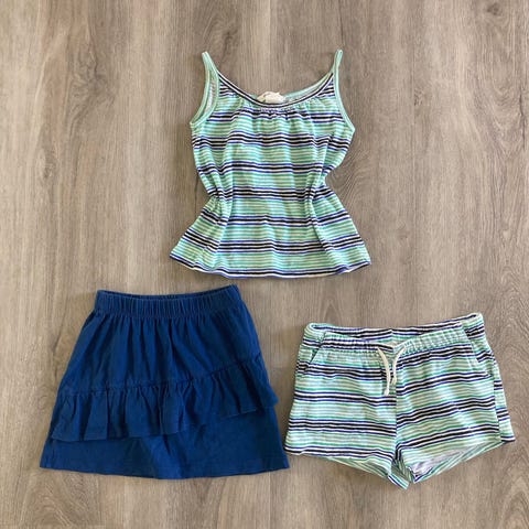 Nederdele 2 stk, shorts 1 par, bluse 1 stk str 146/152