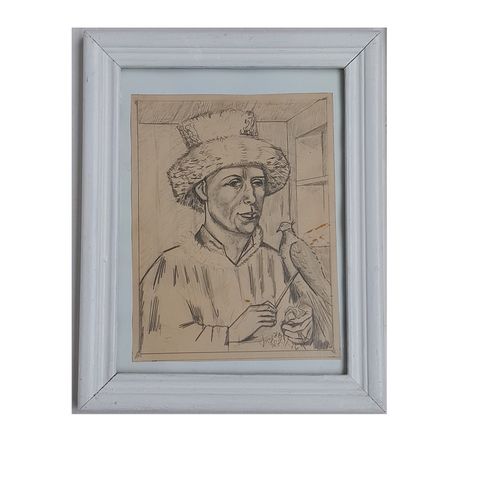22 x 28 cm. stregtegning original, i træramme med glas front