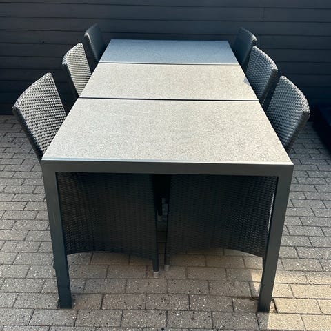 Lækkert havebord incl 6 stole der kan stables