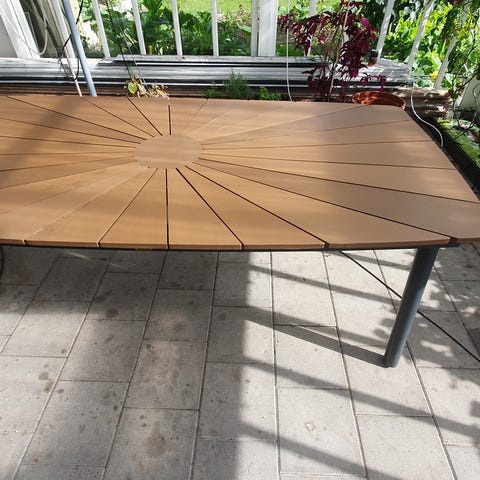 Der kan sidde 8 personer ved bordet og flere hvis man klemmer sig lidt sammen