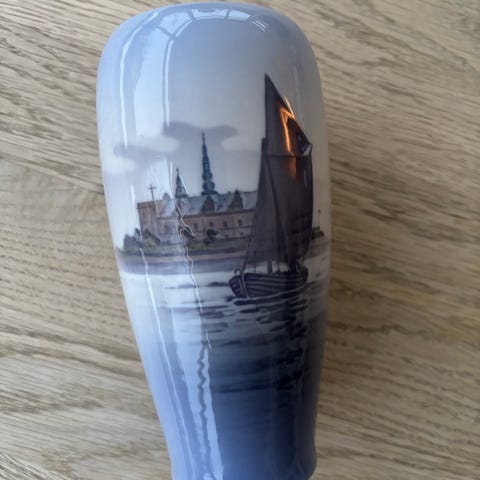 Royal Copenhagen, vase med sejlskib med Kronborg i baggrunden