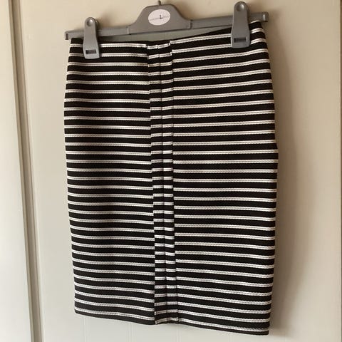 Så god som ny, bliver ikke brugt. Jeg er normalt en M og har lidt hofter, og den passer fint, da der er stræk i