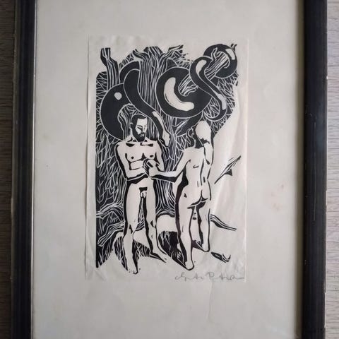 Dette er ikke min spids kompetence men Google har hjulpet. Erik Otto træsnit, i ramme. 36cm bredt. 44,5cm højt.
