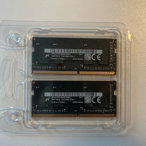 Apple, 4 GB, DDR4 SDRAM, Perfekt, APPLE ORIG. RAM 2 X 4 GB 2666 MhZ. Har du en iMAC med kun 8 GB så har du mulighed for at fordoble RAM. Det kan man selv gøre og det tager ca. 5 min.