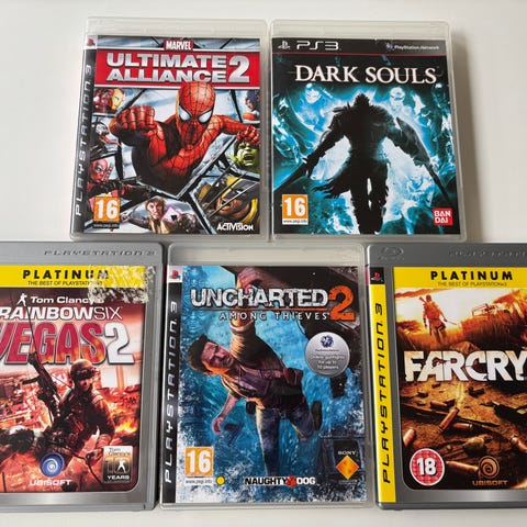 Diverse spil i god stand. 20 kr. stykket eller alle 6 stk. for 70,- (plus fragt)