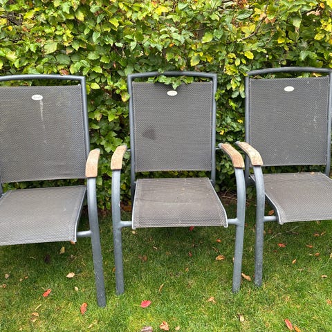 Praktiske og lette havestole i metal, der er foldbare og derfor super nemme at opbevare, når de ikke er i brug.