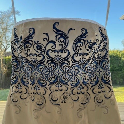 Top, Orsay, str. 40, Blåsort med hvide striber, Viscose med 5% elastan, God men brugt, Blød og behagelig og meget velholdt. Brystvidde 2x50 cm. Længde 85 cm. Meget flot til hvide, blå og sorte bukser/shorts.