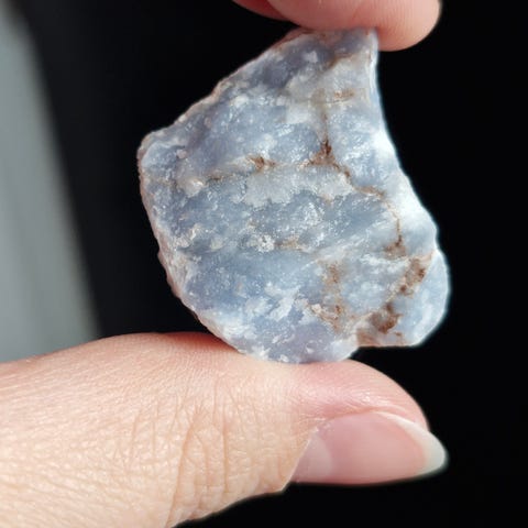 Flotte kvalitets baby blå rå calcit krystal sten fra Mexico i forskellige størrelser 6-9 cm store.