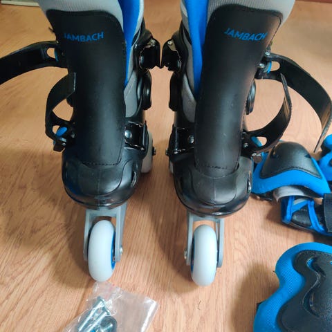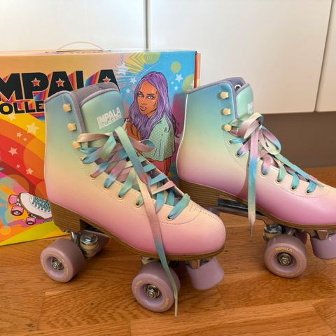 Som nye, kun prøvet en enkelt gang og har nogle ridser fra jomfrurejsen. Desværre voksede barnet fra dem alt for hurtigt.