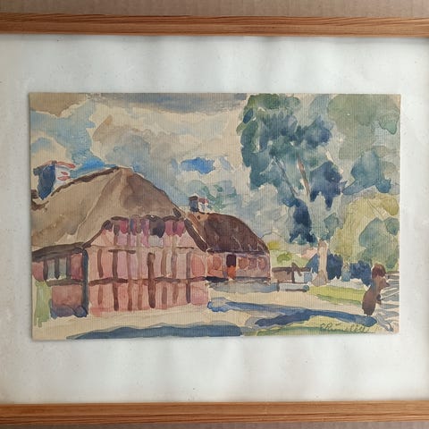 Stor akvarel, Jo Valeur Kyhn. Helligåndshuset 1942
