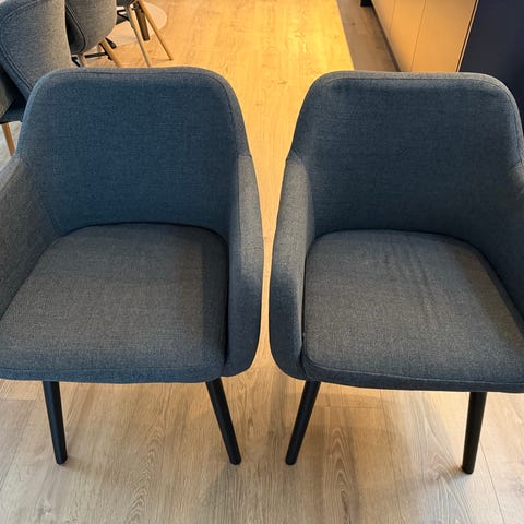 4 stk sorte spisebordsstole sælges. De er ca. 3 år gamle og købt som samlet sæt hos Ilva sammen med spisebord. Har stået i lejlighed nr. 2, som er brugt sjældent, og det er rygerfrit hjem. Original pris var 795 kr pr styk, så de sælges som 4 for 1 pris.