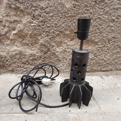 Custom made, Unika bordlampe. Lavet af Garrett turbo og cnc-drejet fod af aircraft-grade aluminium. Fatning af porcelæn .