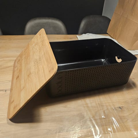 Bodum brødkasse i sort sælges. Det er den store model. L38,5 H13,8 B23,7