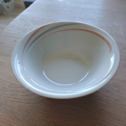 Sød lille skål med fod til at anrette dessert på. Der er et fint mønster udenpå og i bunden.