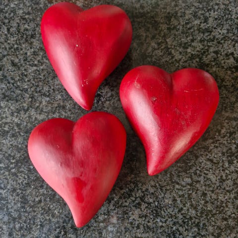 2 røde hjerter, måler 5,50 x 5,50 cm
