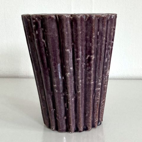 En enkel konisk potte i blankglaseret keramik fra starten af 90erne – perfekt til at huse en orkide, potterose eller krydderurt. Urtepotteskjuleren kan også fint bruges som vase, til opbevaring af tudser, malerpensler mm.