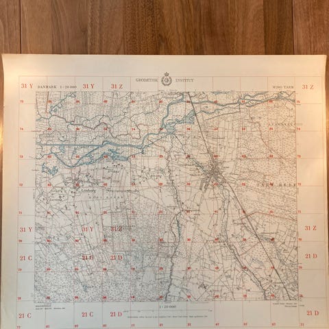 Vægkort fra 1952: Taars og omegn (perfekt stand)