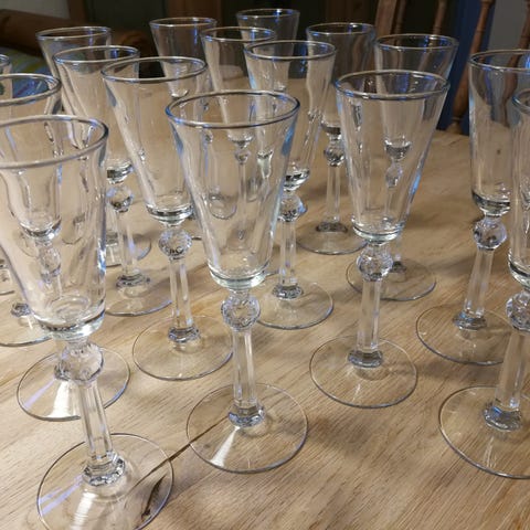Fem meget enkle, men fine glas - højde ca. 11,5 cm. De er i perfekt stand. Samlet pris er kr. 65,00.